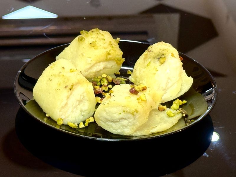 blat halawet el jiben (apa, gris, mozzarela, zahar, apa de flori), crema de lapte (lapte praf, zahar, gris, apa, apa de flori), sirop (zahar, apa, lamaie)